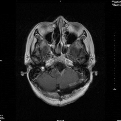 患者临床表现复杂多样,缺乏特征性的症状体征,因而容易误诊为颈椎病等。常见症状和体征包括头颈痛、肢体无力、感觉缺失、吞咽困难等,头颈部疼痛最常见,常为首发症状,多为锐痛,头颈运动时疼痛加剧。继而可出现深感觉即关节位置觉、震动觉的丧失和肢体的强直痉挛、无力,多先发生于同侧上肢,而后呈顺时针方向影响四肢。其中上肢位置觉、震动觉不对称性缺失具有相对特异性。后组颅神经中舌咽、迷走和舌下神经常受累,副神经症状少见,可表现为吞咽困难、言语不利、间歇式呼吸,亦有以口腔溃疡为首发症状的报道。椎基底动脉系统由于受肿瘤压迫、牵拉可表现短暂性或周期性症状,如跌倒发作、偏头痛等。