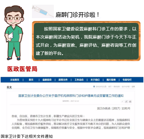 (2)麻醉相关工作的咨询,如术后镇痛、术后出院患者麻醉随访等。