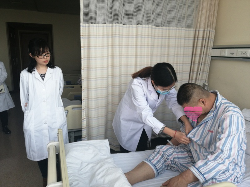住院医生崔尧丽对病史进行了补充,李兰芳主任进一步提问病人的病史情况,并针对学生的查体手法进行纠正与示范。