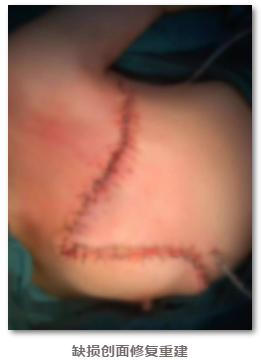 但有了术前的精准判断和多学科会诊,手术团队在完整保留了患者的腋血管及臂丛神经的前提下,仅用一个多小时就彻底切除了肿瘤,并利用临近的旋转及推进皮瓣技术迅速完成了缺损创面的即刻修复重建。