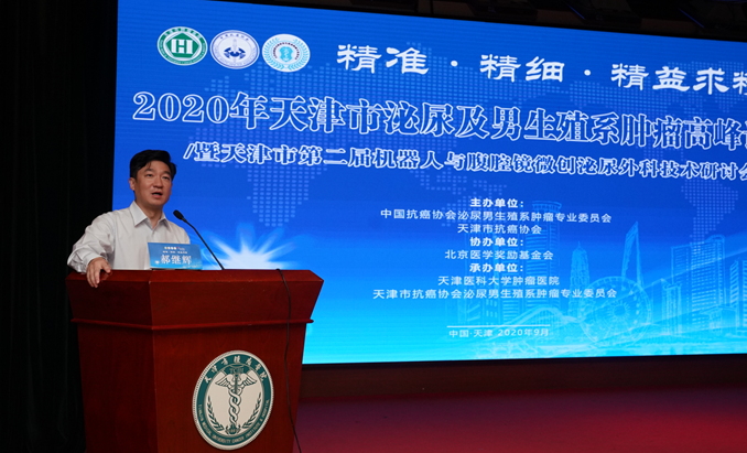 | 2020年9月12日由中国抗癌协会泌尿生殖系肿瘤专业委员会、天津市抗癌协会主办、天津医科大学肿瘤医院泌尿肿瘤科、天津市抗癌协会泌尿男生殖系肿瘤专业委员会承办的 “天津市第二届机器人与腹腔镜微创泌尿外科技术研讨会暨2020天津泌尿肿瘤高峰论坛”在天津顺利举行。本次会议继续以“精准精细 精益求精”为主题,以泌尿系统肿瘤的微创演示手术为专题,邀请到多位国内泌尿外科的顶尖专家分享和交流手术经验心得。在此次会议中,天津医科大学肿瘤医院泌尿肿瘤科科主任姚欣教授分享了我院泌尿肿瘤科500多例机器人手术的单中心总结,表示科室在开展前列腺癌、肾癌、膀胱癌等多种恶性肿瘤的机器人手术的基础上,不断挑战医学领域的“不可能”,针对既往认为难以实现的高难度手术,比如肾门型肿瘤或肾癌复发患者,也能够通过机器人技术在做到完整切除的基础上为患者保留肾功能,为推动天津市乃至周边地区泌尿微创技术水平整体提升贡献力量。