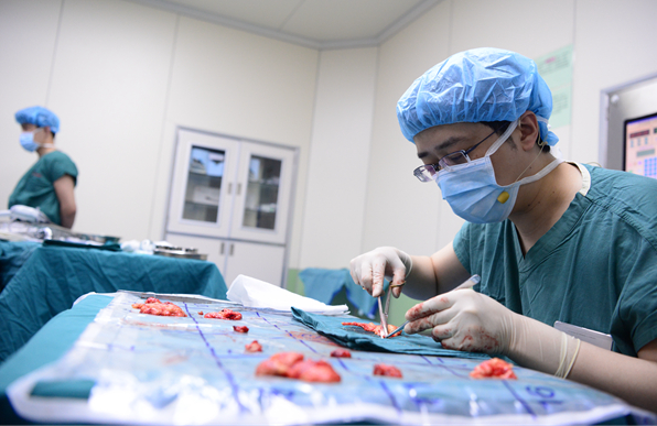 邓靖宇教授进行胃癌标本淋巴结分拣术