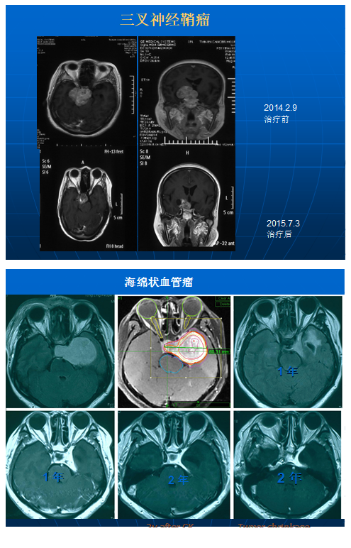 脑膜瘤、垂体瘤、听神经瘤、三叉神经鞘瘤、胶质瘤、脑转移瘤、AVM、三叉神经疼、脊髓肿瘤及脊柱肿瘤等。脑干肿瘤、颅底海绵状血管瘤、眼眶内、蝶窦、筛窦鼻腔的肿瘤及手术后残留、复发的肿瘤均可以。