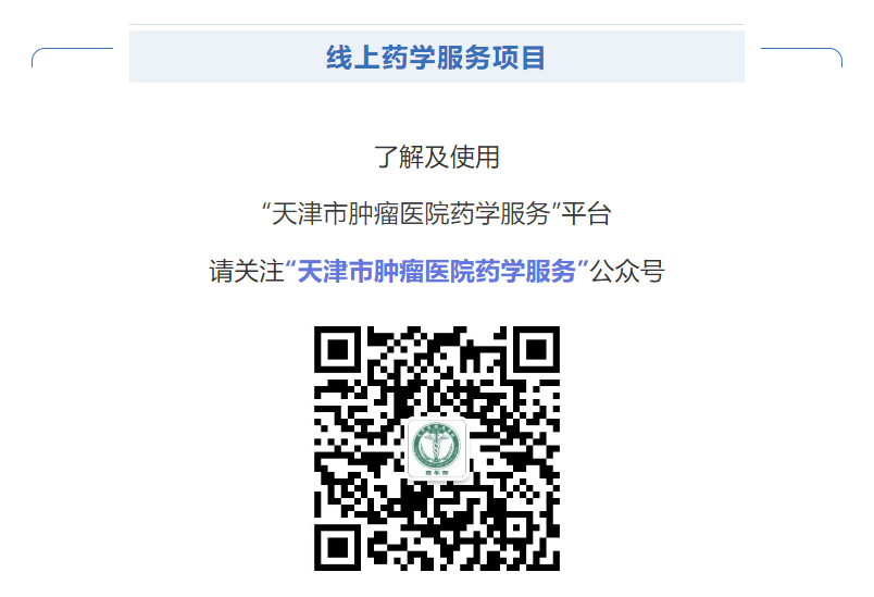 在肿瘤疾病复杂、大量新药上市、疫情防控常态化的多重挑战下,天津市肿瘤医院药学服务平台力争成为临床医生慢病管理的助手、肿瘤患者居家用药的守卫,为肿瘤患者安全、有效、合理的用药保驾护航!