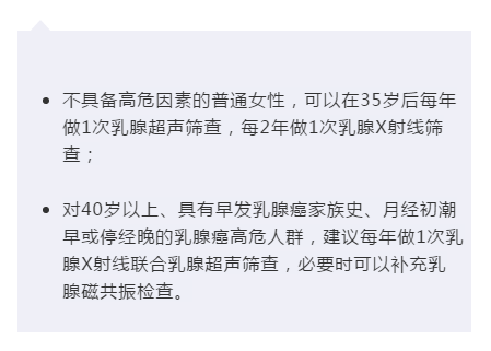 因此,具有乳腺癌家族史的人群,尤其是有2位以上一级亲属曾患乳腺癌或携带乳腺癌致病性遗传突变的人群,更需要密切关注自身乳腺健康,建议坚持每年做 1 次乳腺 B超、乳腺X射线、乳腺核磁共振的联合筛查。