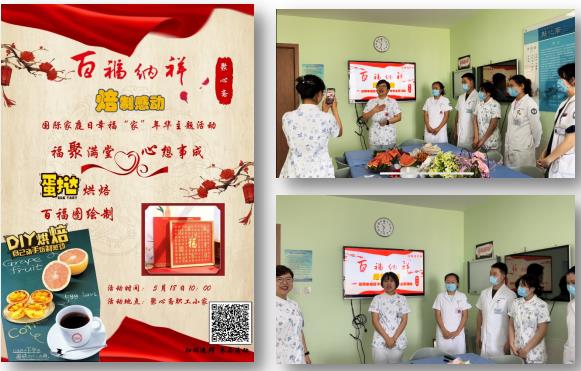 | 为加强医院文化建设,生物治疗科医护人员在聚心斋职工小家里举办了同绘百福图、共焙甜蜜蛋挞、连线援沪队员的“百福纳祥 焙制感动”现场直播活动。杜兰特说过:家庭是文明的核心,平安是家庭幸福的基石,和谐是社会文明的象征,只有“小家”平安幸福,“大家”才能和谐进步。有家的地方就有爱,有家的地方就有温暖,疫情当下,让我们用爱去温暖彼此的心灵,共同传递最美家力量,弘扬时代好家风。