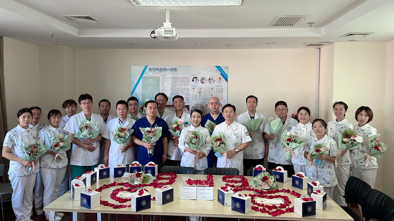 2022年8月19日是第五个“中国医师节”,食管肿瘤科与食管肿瘤微创外科医护团队齐聚一堂,举行了主题为“医”路同行,护佑生命的联欢活动,向辛勤工作在临床一线、守护患者健康的医务工作者们致以节日的问候和崇高的敬意。活动开始前,护士长带领护士们精心策划布置了活动场地,用花瓣摆出了“8.19”及“心连心”字样和图形。