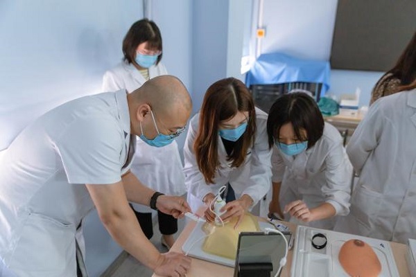 基地拥有全市最大规模超声实践操作培训中心,配备先进超声诊断仪器、超声模拟人、超声引导穿刺活检智能模拟器、多模块超声模拟穿刺,打破传统教学模式,利用新思路、新技术在教室内还原临床一线诊疗。