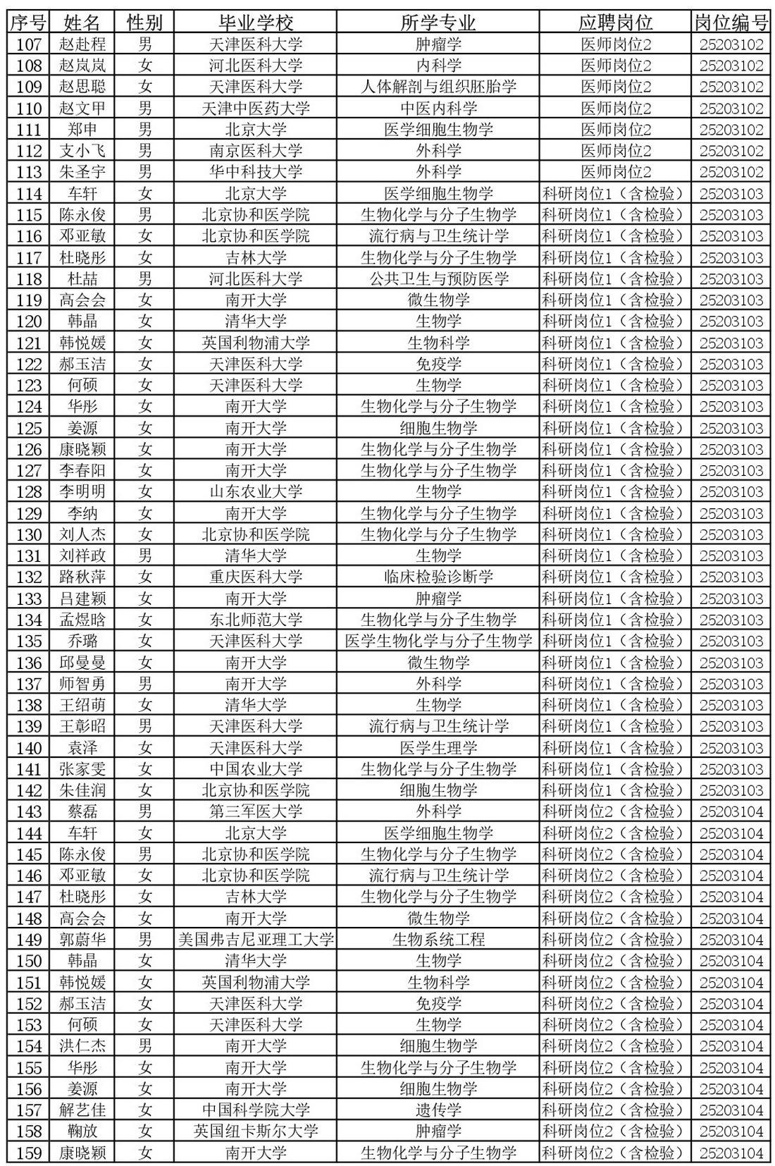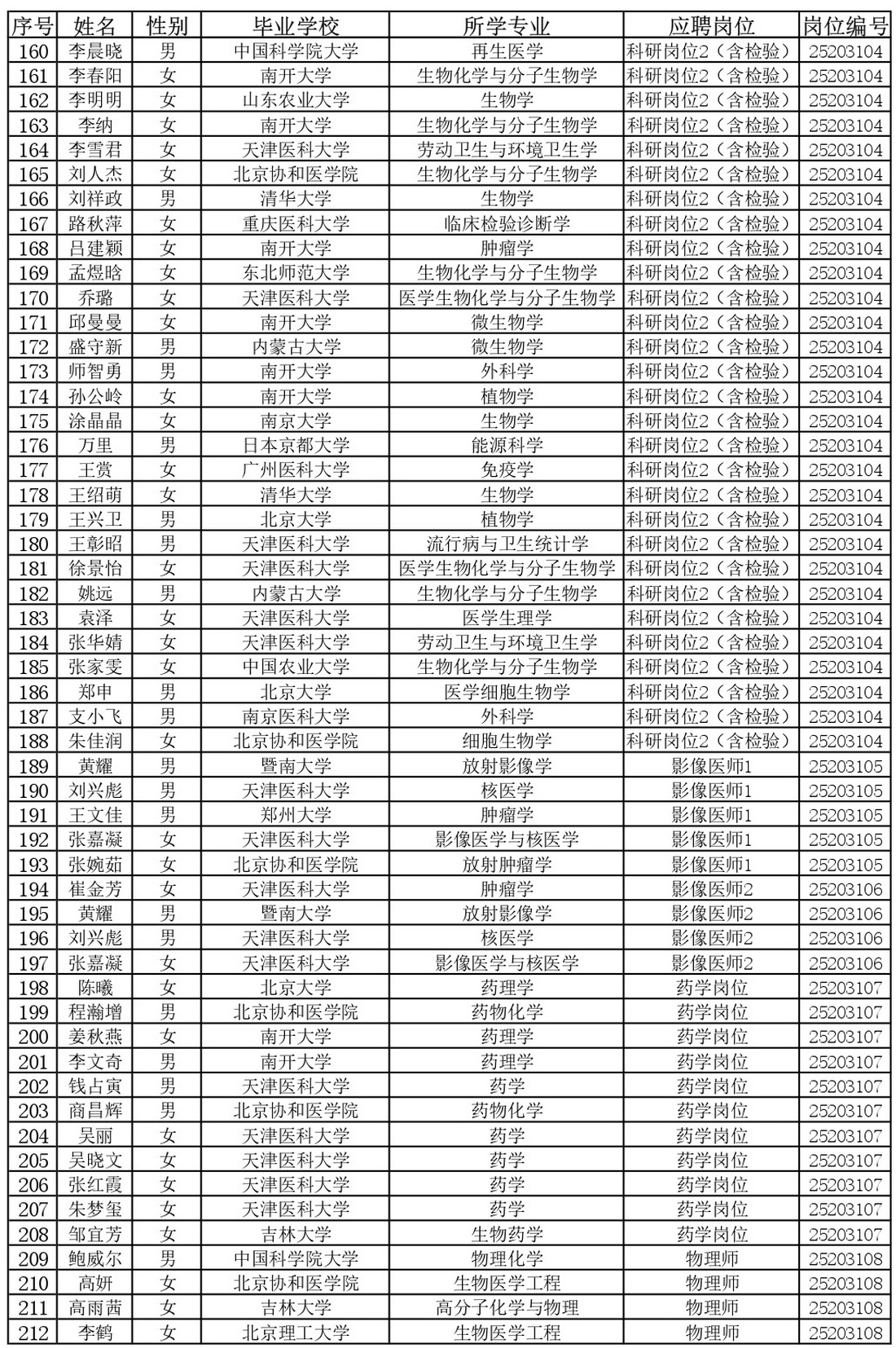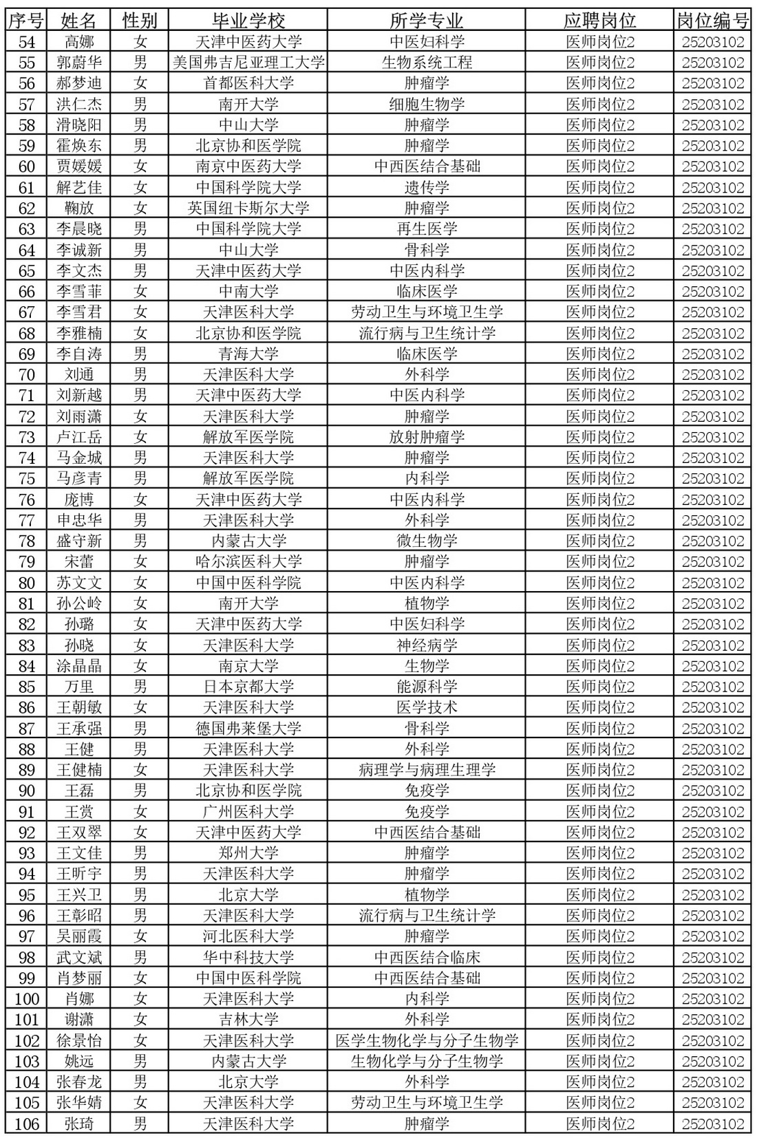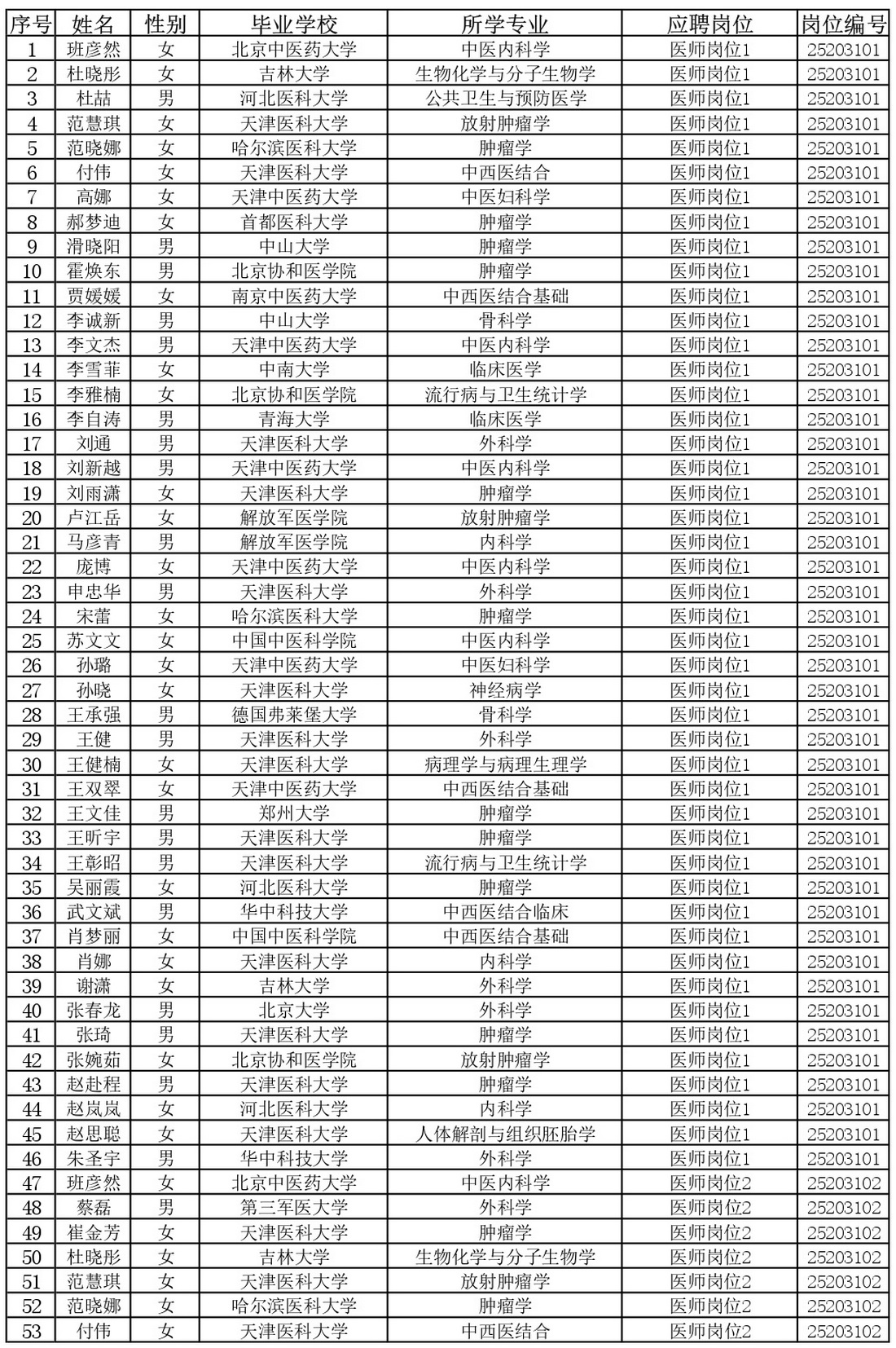 【2025年第一批公开招聘补录】天津医科大学肿瘤医院2025年公开招聘博士等人员第二次报名通过资格审查人员名单