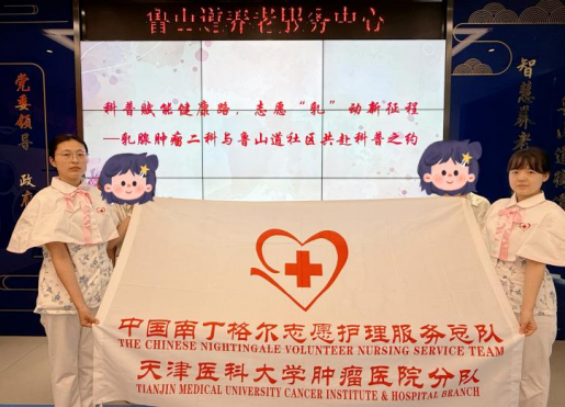 在全国科普月来临之际,乳腺肿瘤二科南丁格尔志愿护理服务队于9月18日携手天津市河东区鲁山道社区共同开启“科普赋能健康路,志愿‘乳’动新征程”主题活动。
